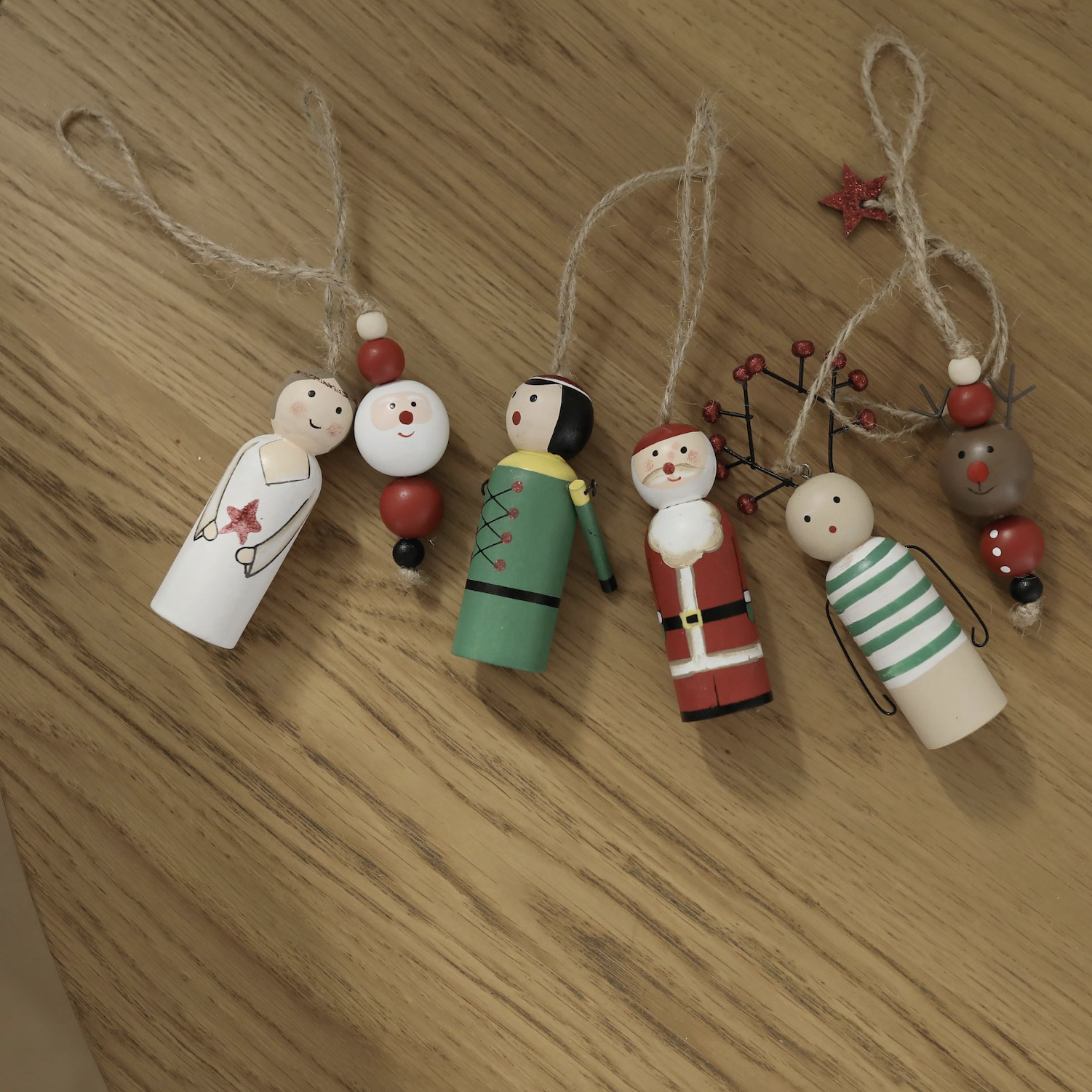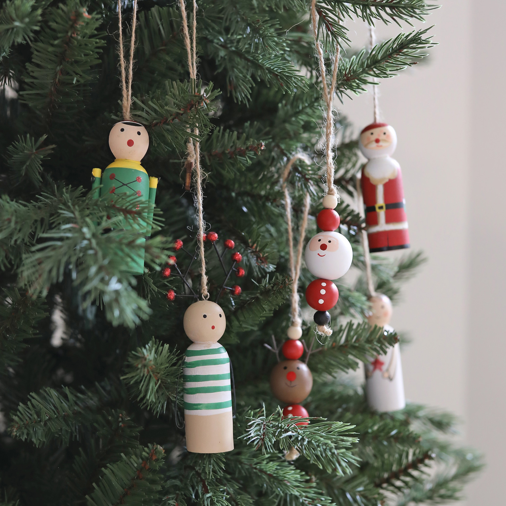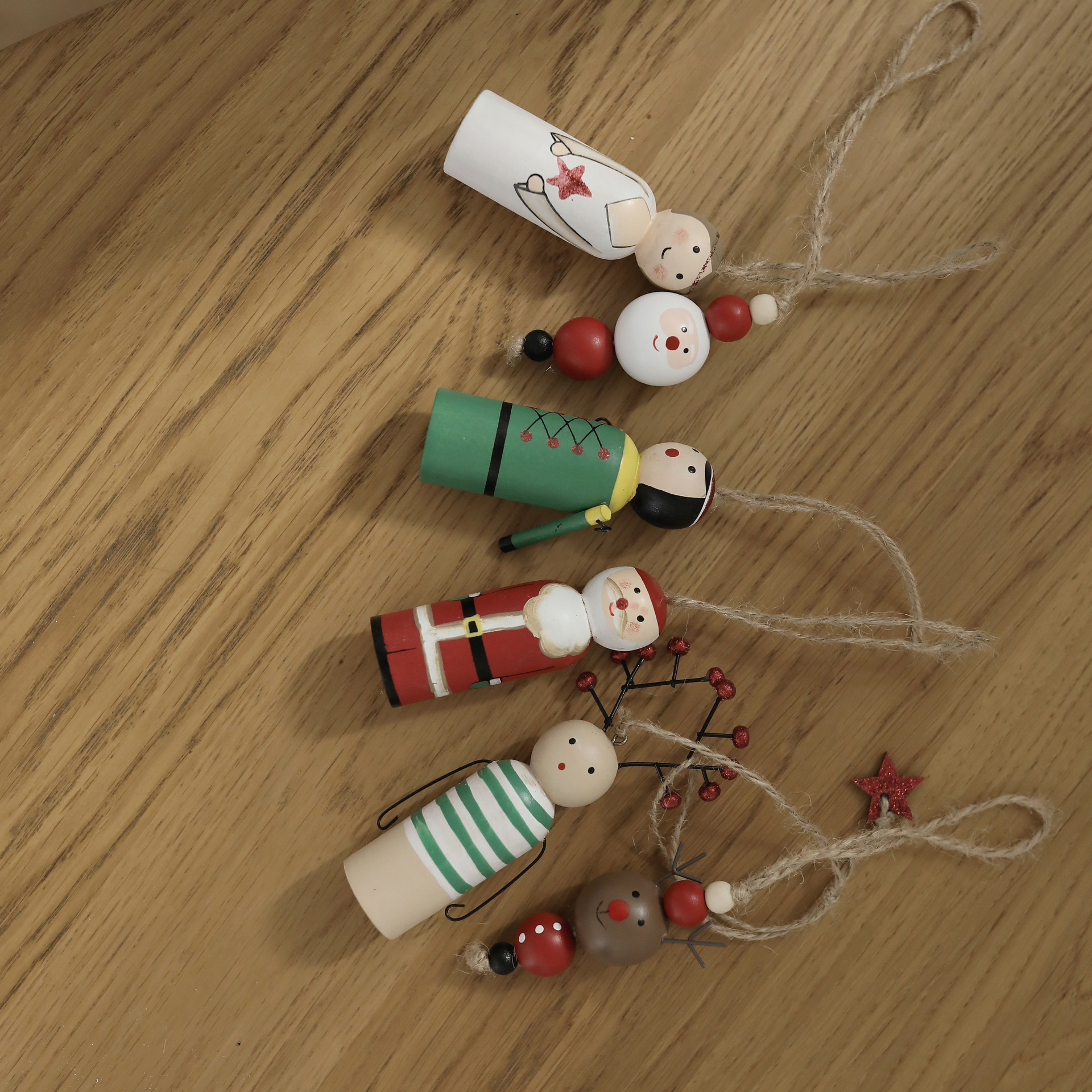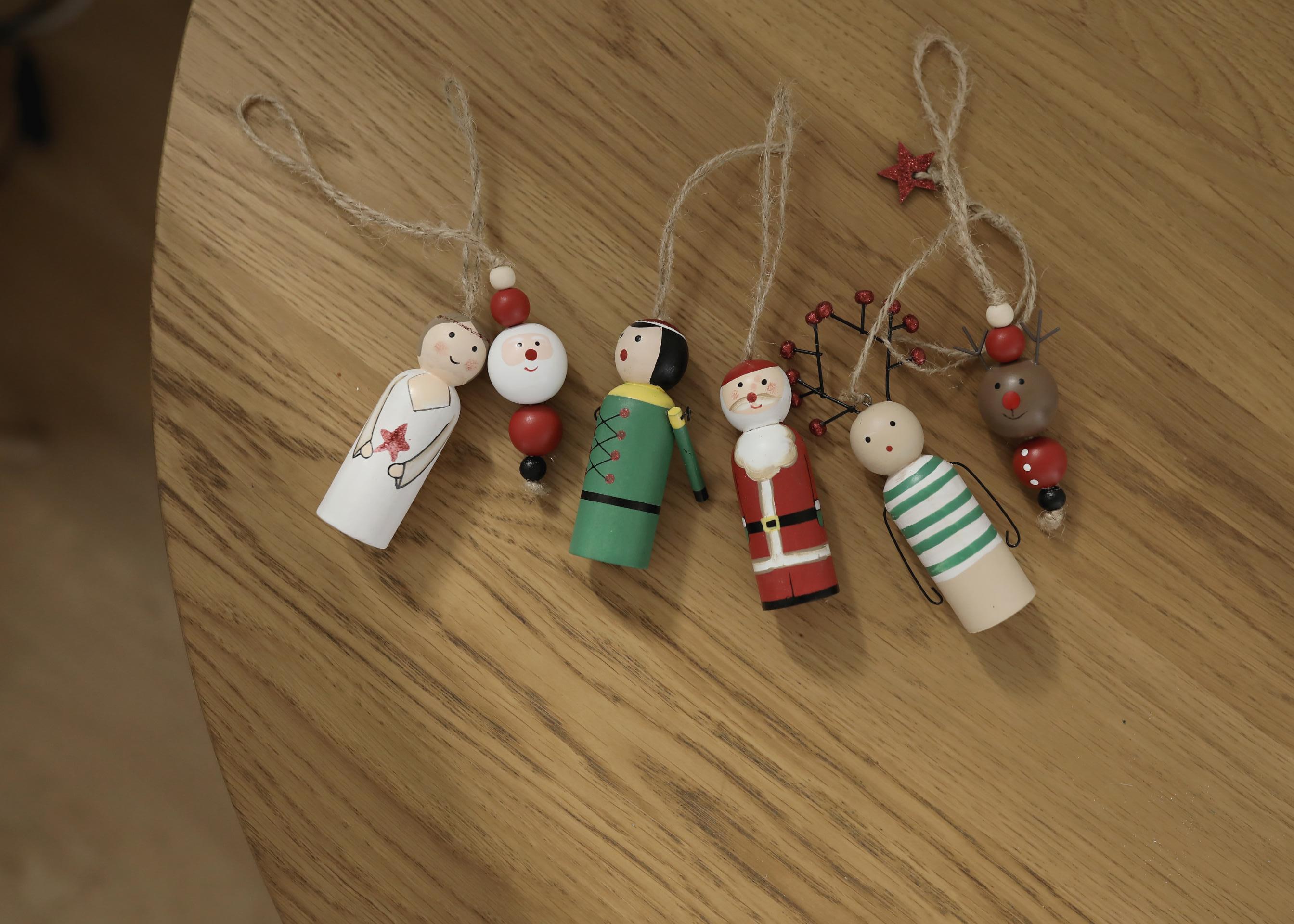 우드에 핸드페인팅으로 하나하나 수작업 된 오너먼트 입니다 . 장인의 손길 닿은만큼 디테일이 깨끗하고 섬세해요 . 각 오너먼트마다 다른 부재료들의 깨알같은 디테일을 눈여겨 봐주세요 . 넉넉한 길이의 마끈으로 우드 오너먼트에 따뜻한 느낌을 더했어요 . 워낙 견고하여 트리에도 좋지만 아이들의 방문이나 소지품등에 참으로 활용해도 좋을것 같아요 .