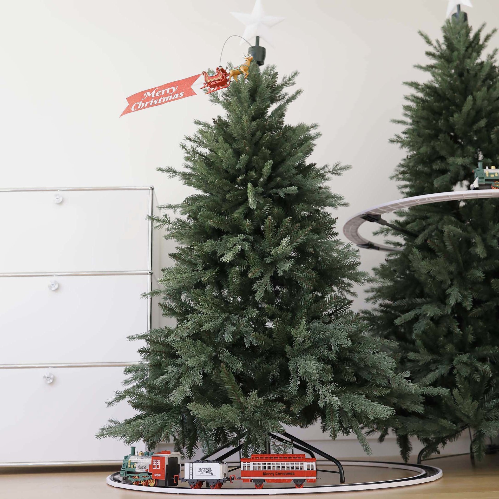 트리토퍼 , 트리기차 가 설치 되었을때의 밸런스 , 더하여 오너먼트까지 풍성한 연출을 하고 싶으시면 180cm 사이즈 선택은 필수 .