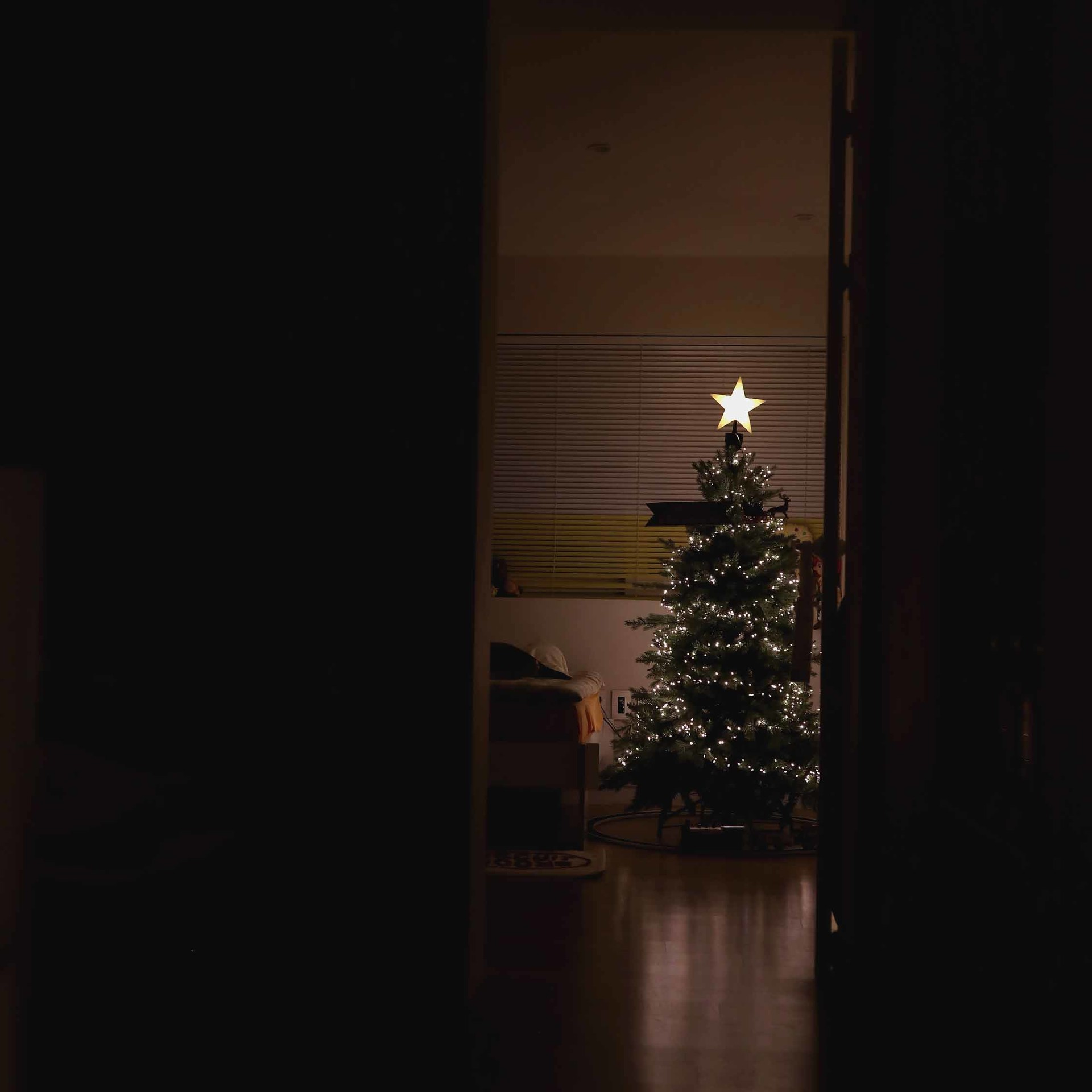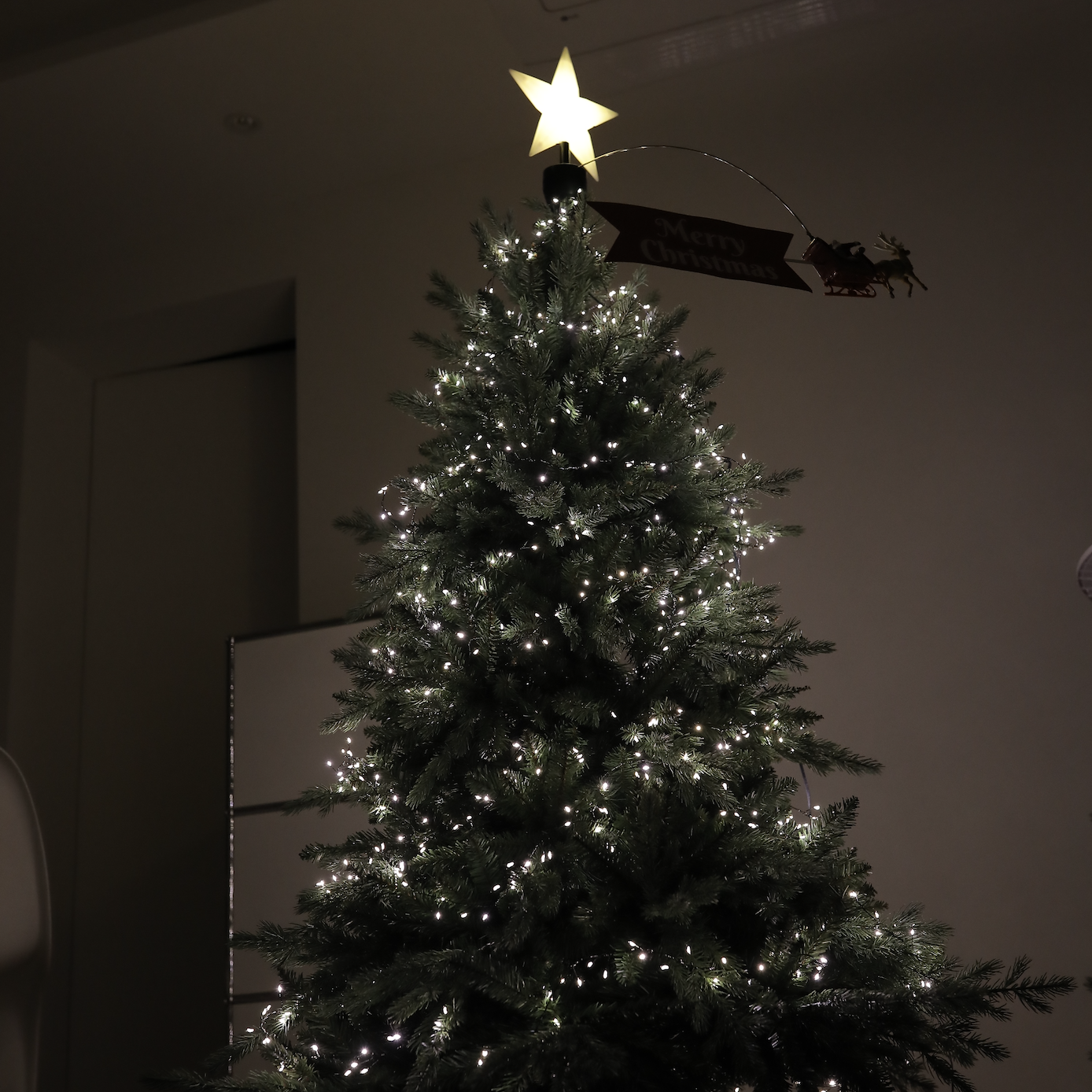 연출 사진에는 미리내 전구 1000구 사용하였어요 . 오너먼트도 함께 빛나야 하니깐 적당히 예쁜 정도의 불빛 .