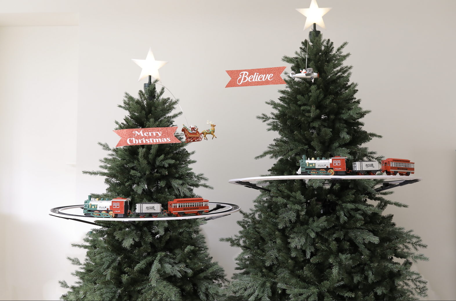 아래 / 150트리, 180트리 센터에 트리기차 센터 고정 , 토퍼 연출 비교 사진 입니다.