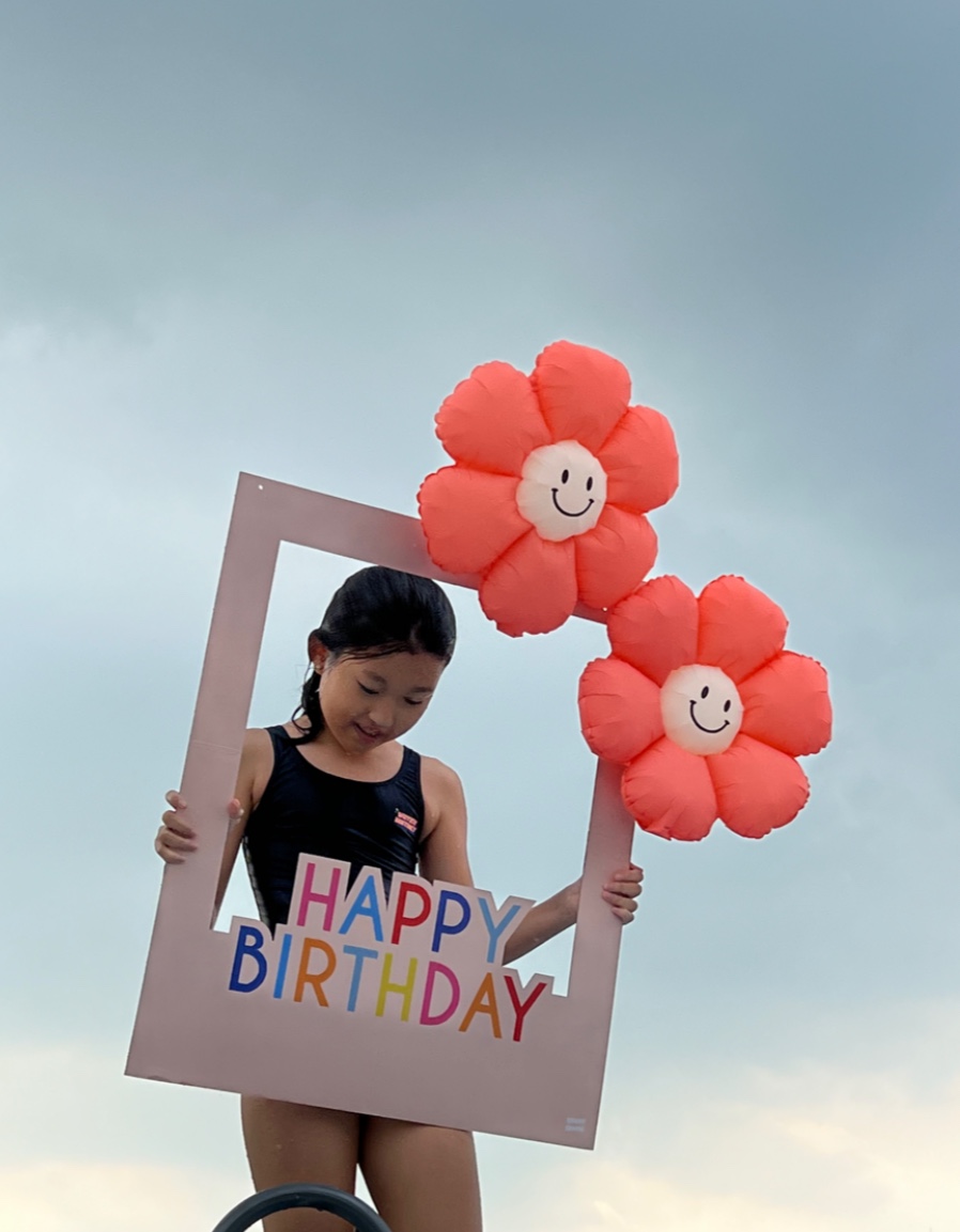 HBD 프레임 보드에 미니 데이지 벌룬을 양면 테이프로 붙여 연출한 예시 입니다 .