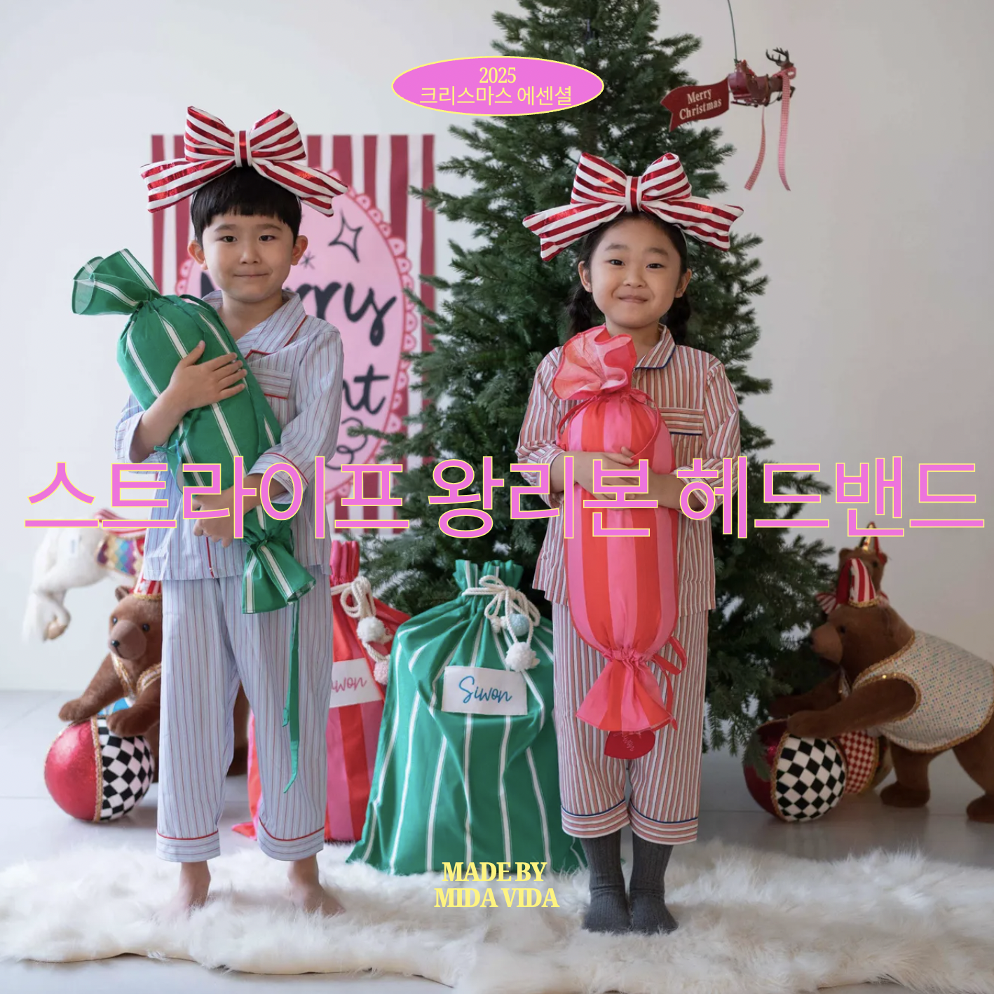 스트라이프 왕리본 헤드밴드 / ✨🎄 ONLY MIDAVIDA 🎄✨