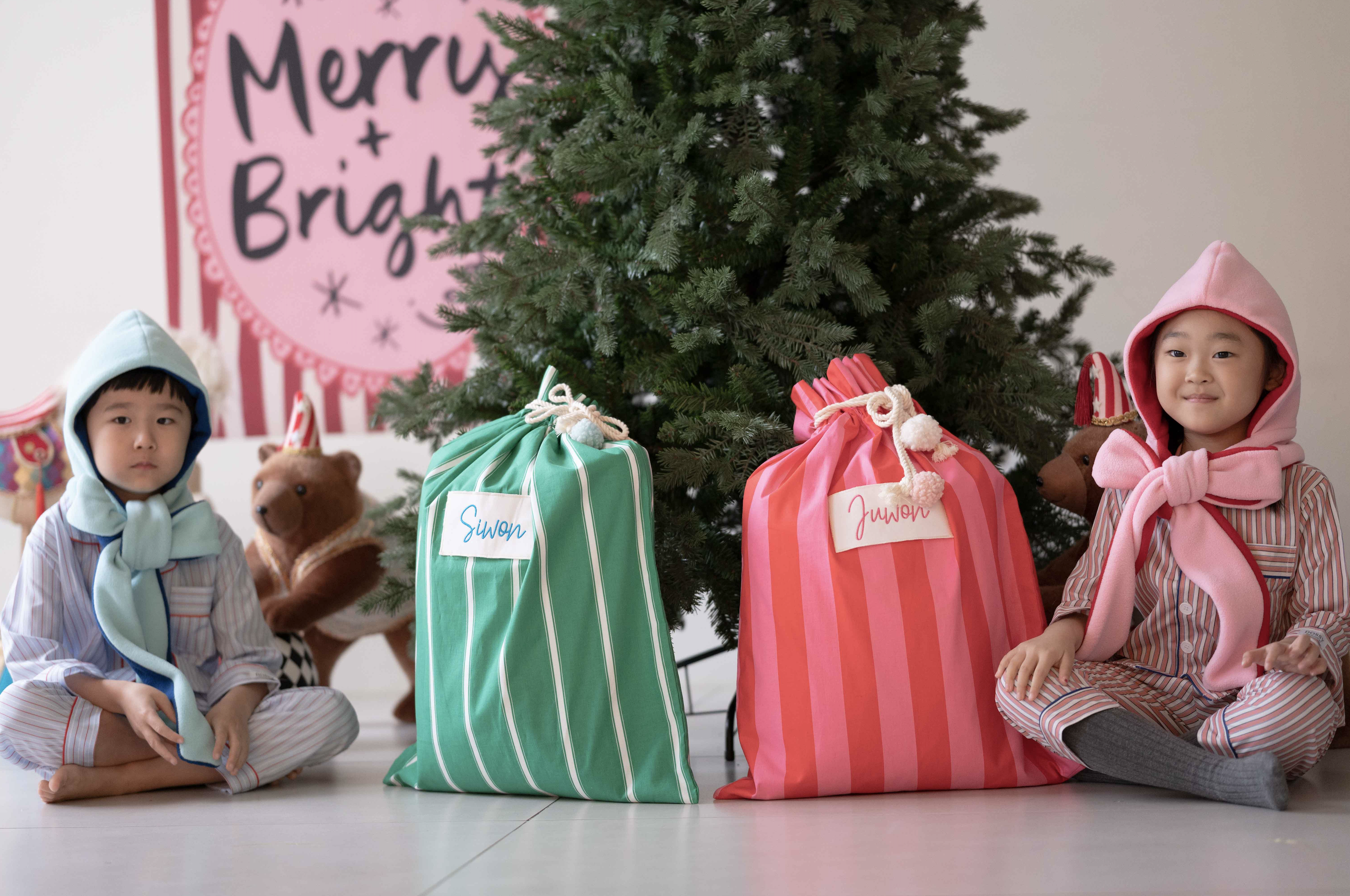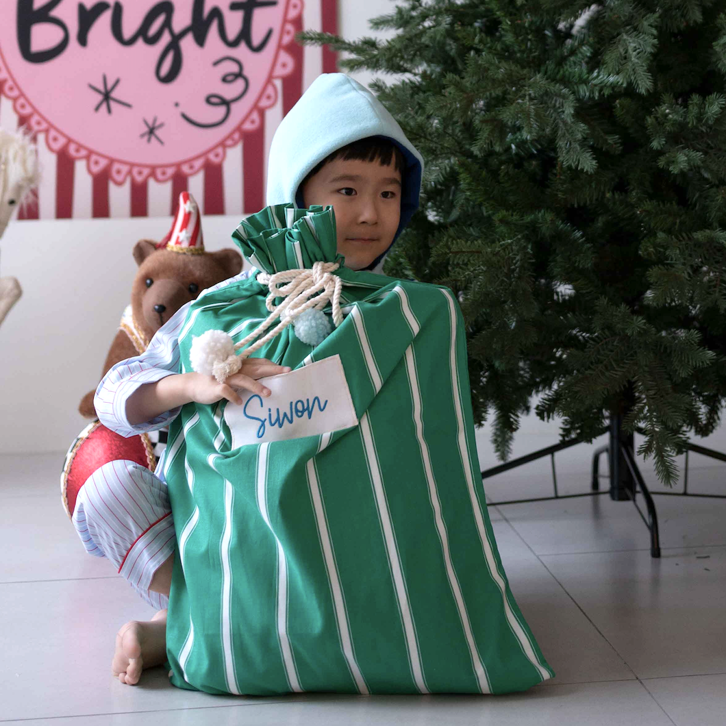 크리스마스가 지나면 놀이감 가방으로, 여행용 더스트백으로도, 이것저것 아이들꺼 넣어 보관하고 활용하기에 그게 좋겠다 했어요 .