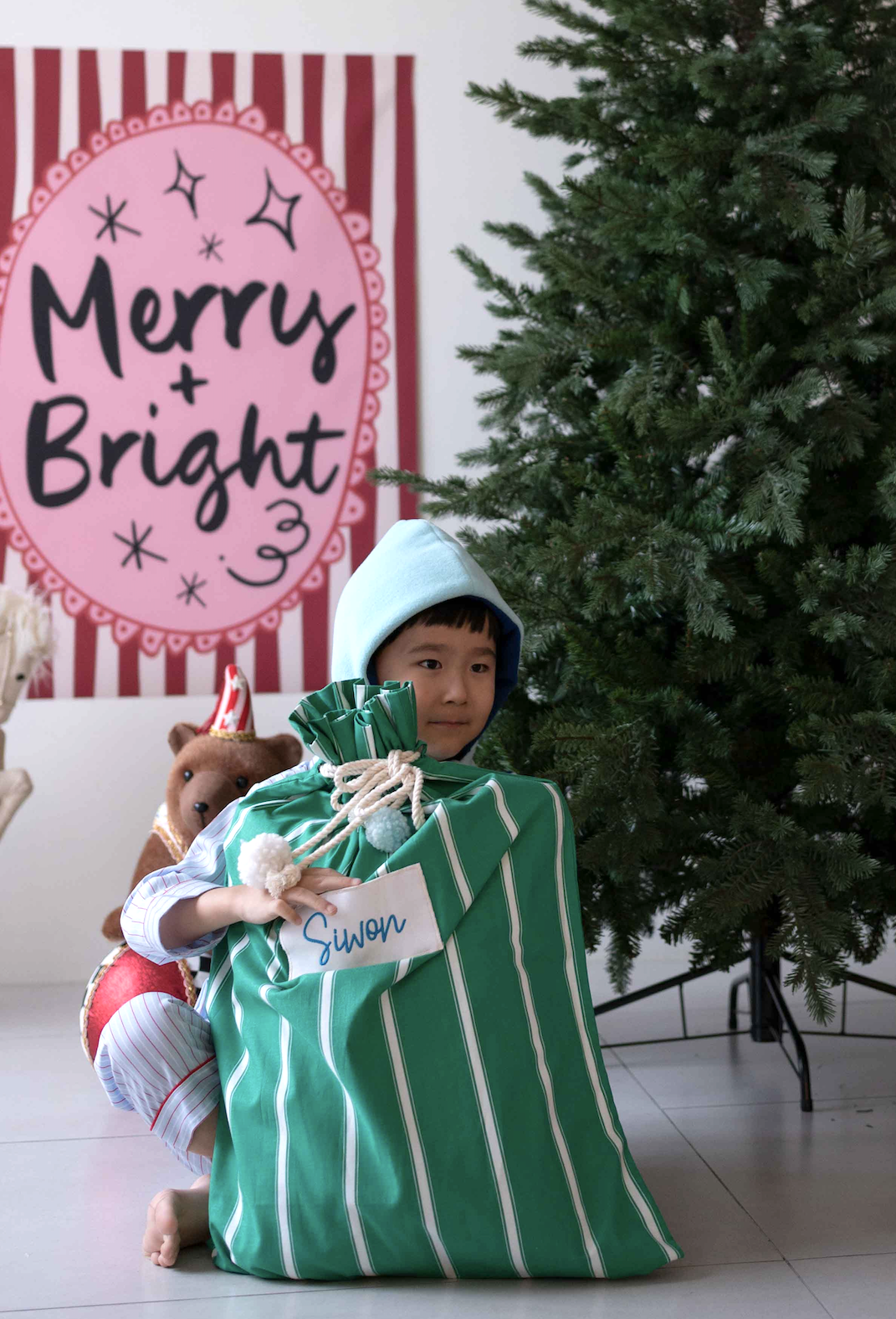 산타 할아버지가 내이름이 적힌 선물 가방을 머리맡에 놓고 가셨다구 ? ! ! !