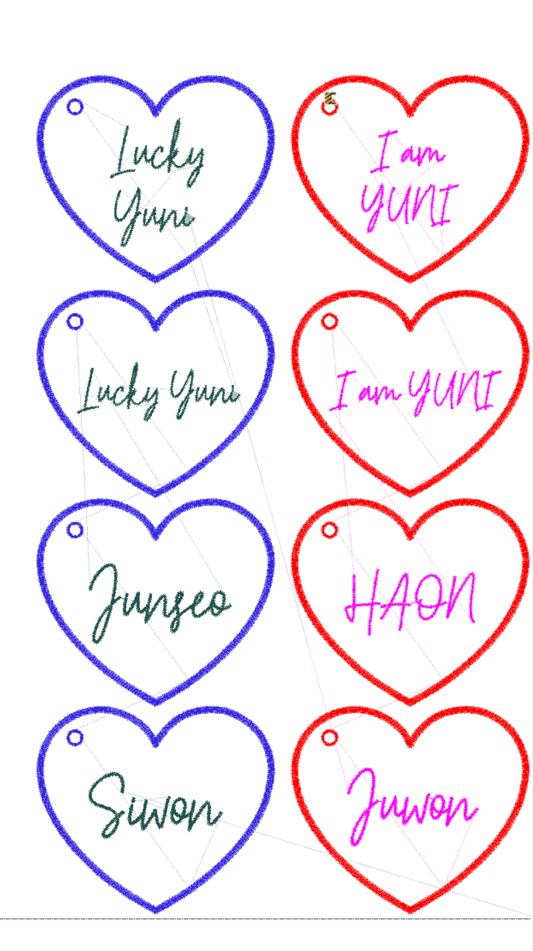 레터링은 하트패치의 크기안에서 ( 가로 9cm * 높이 9cm ) 알파벳 숫자에 따라 글자의 크기나 위치가 조절 됩니다.