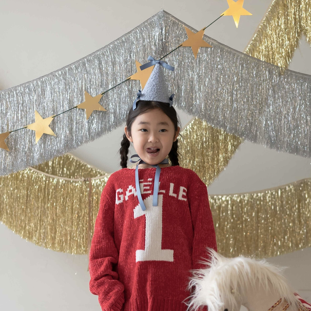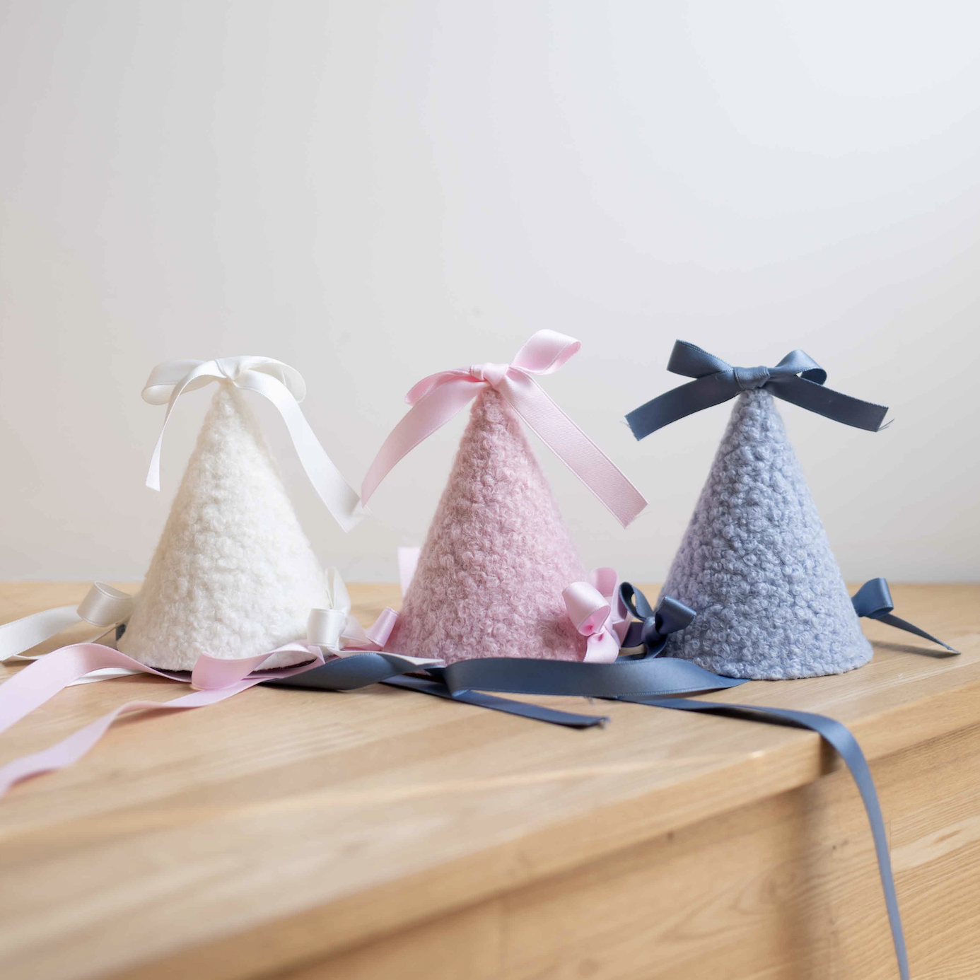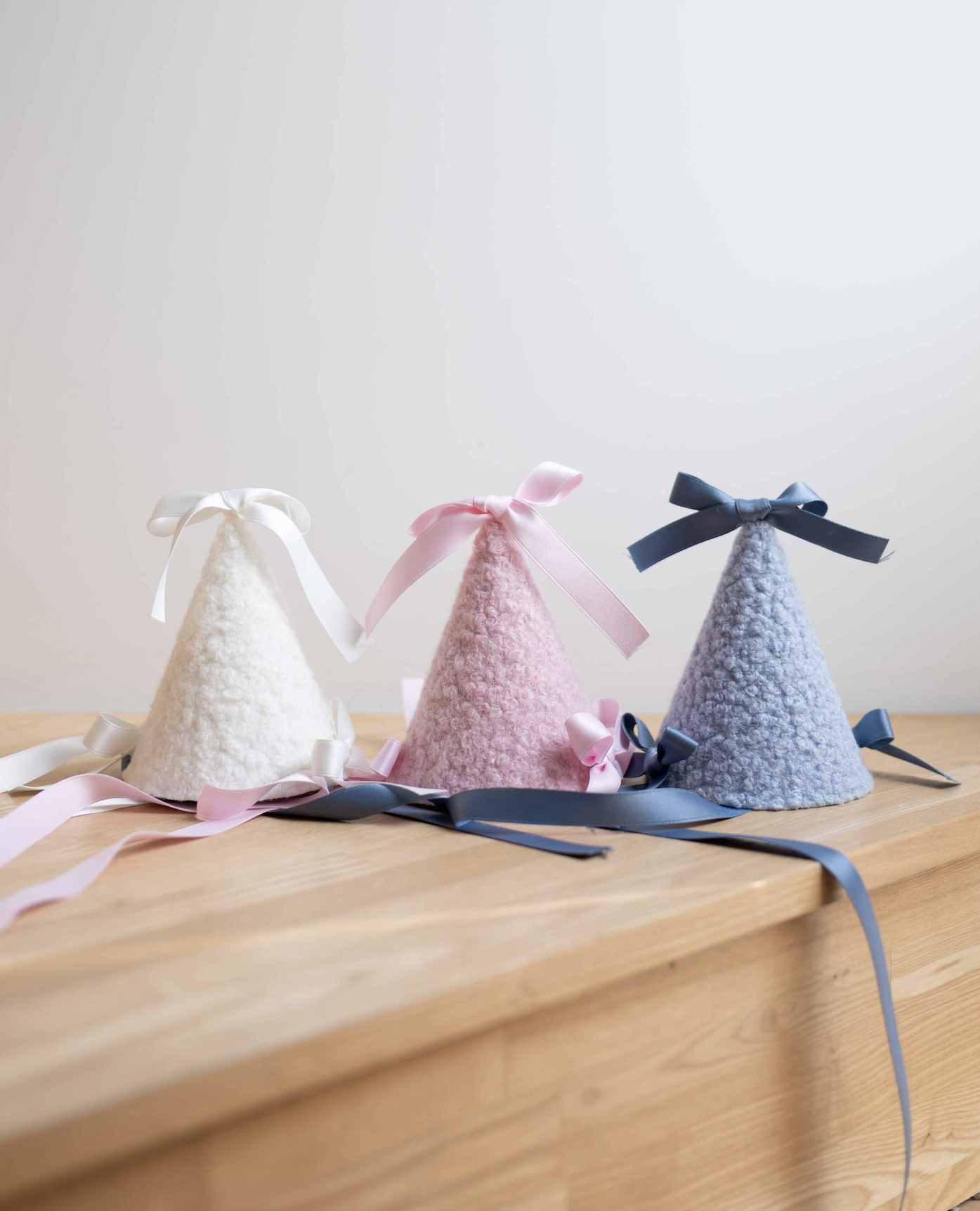 ✔ 양털같이 뽀송한 파티햇에 리본+리본+리본의 조합입니다 .