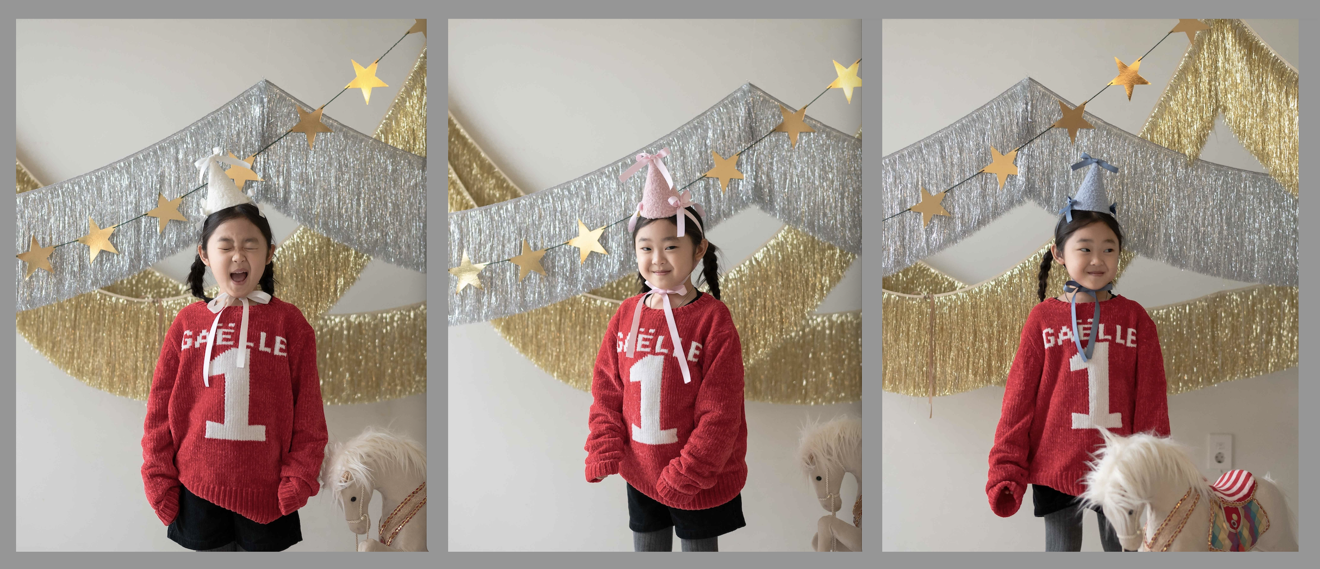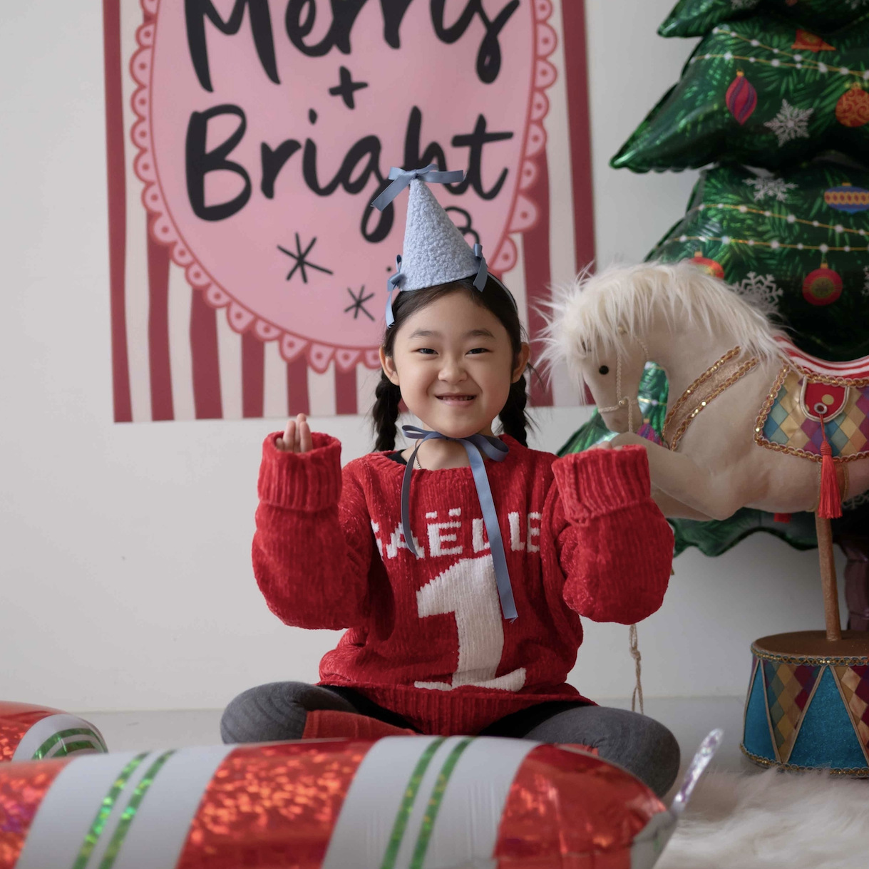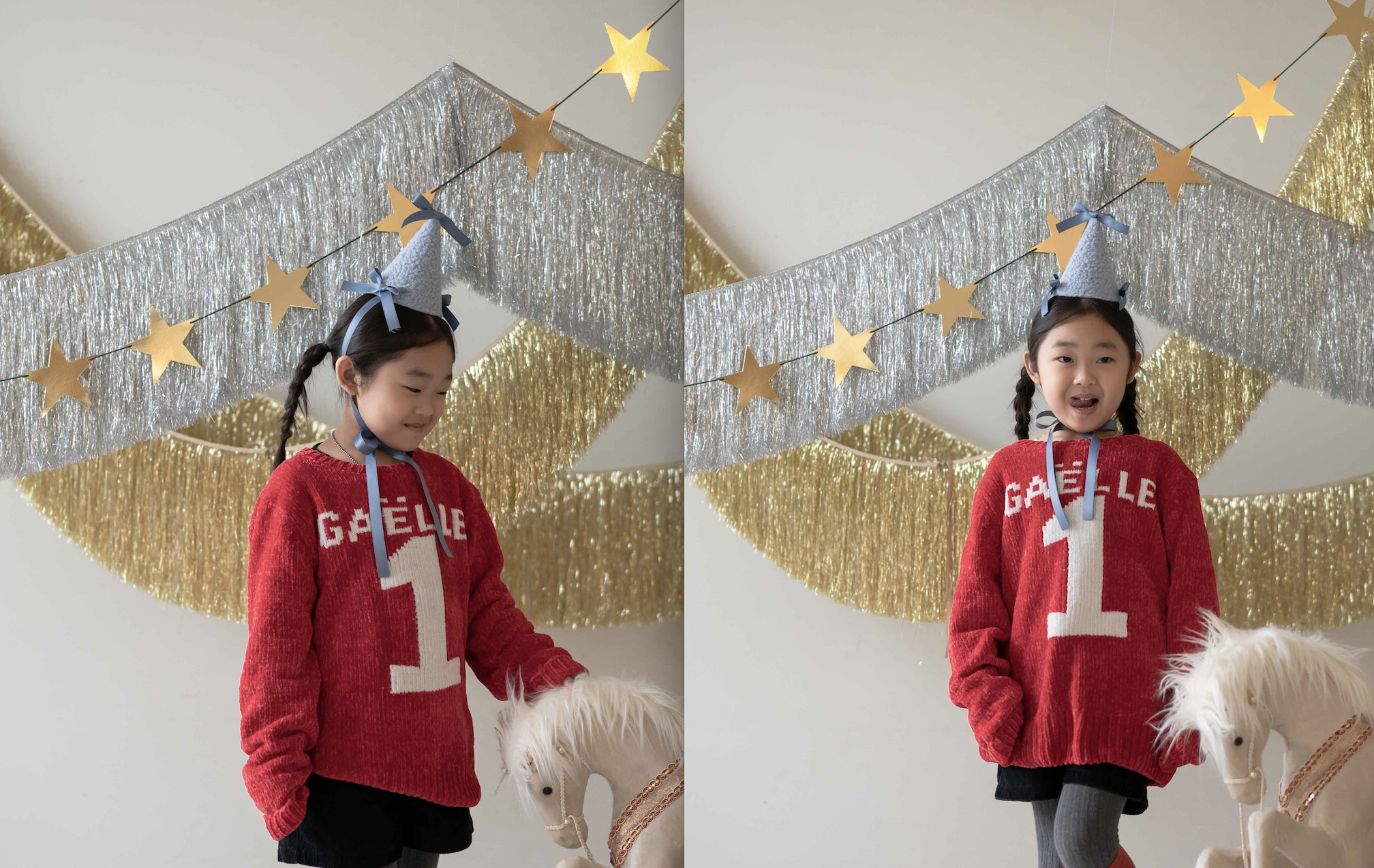 ✔ 양털같이 뽀송한 파티햇에 리본+리본+리본의 조합입니다 .