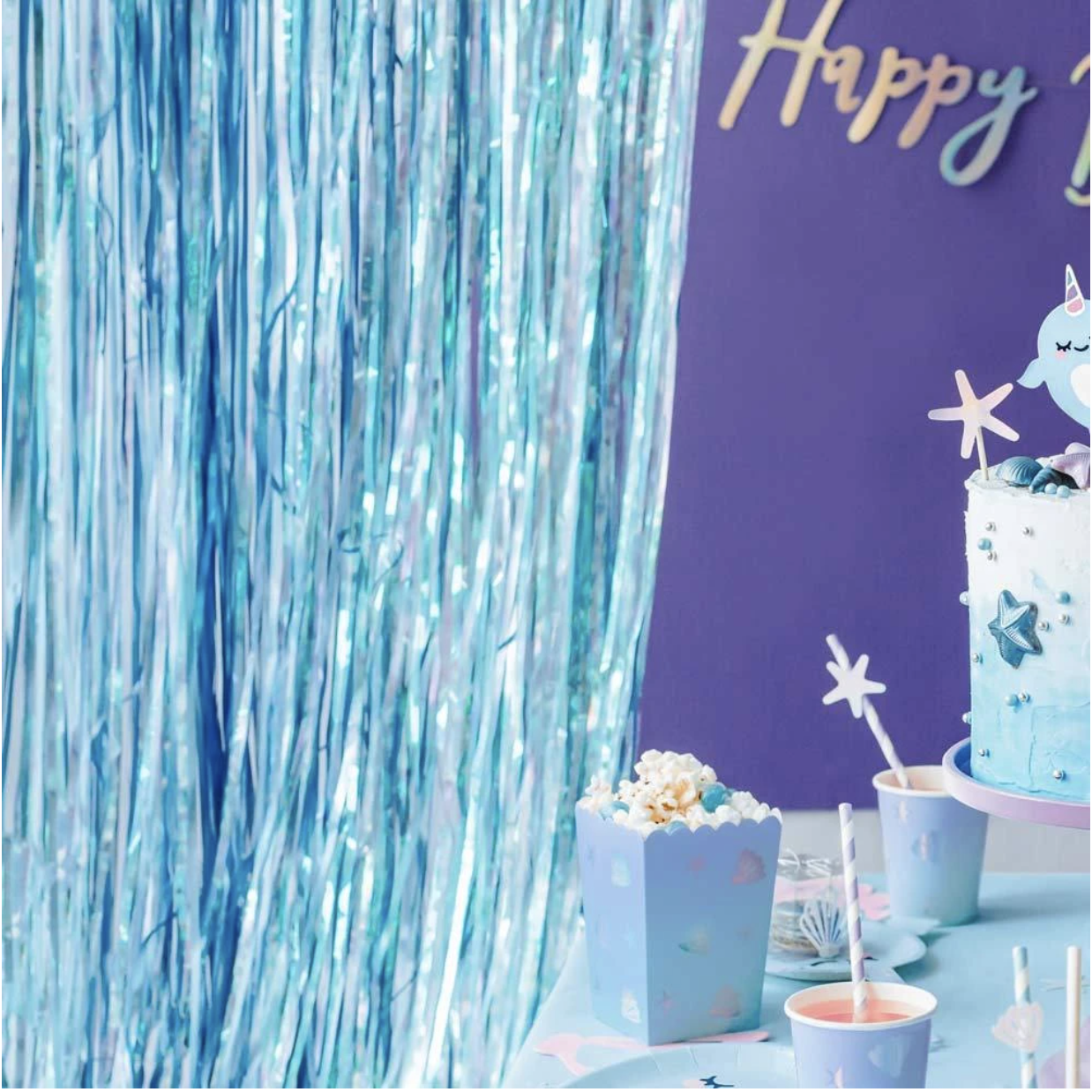 Fringe Foil Curtain / Blue [100cmx200cm]